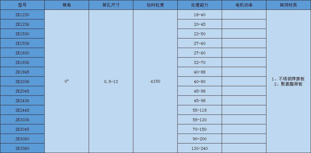 ZK系列直線振動篩適用于煤炭、化工、建材等不同行業(yè)的需要,廣泛適用于物料的脫水、脫泥脫介作業(yè)以及產(chǎn)品的分級作業(yè)。